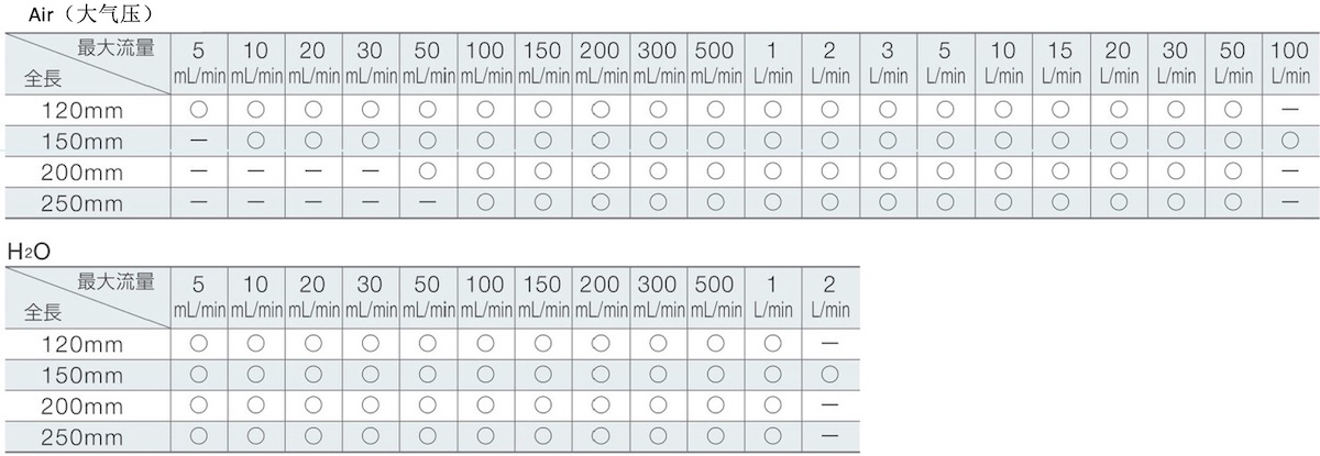 流量量程(气体是大气压) | 5mL/min~100L/min (请参考容量清单) |